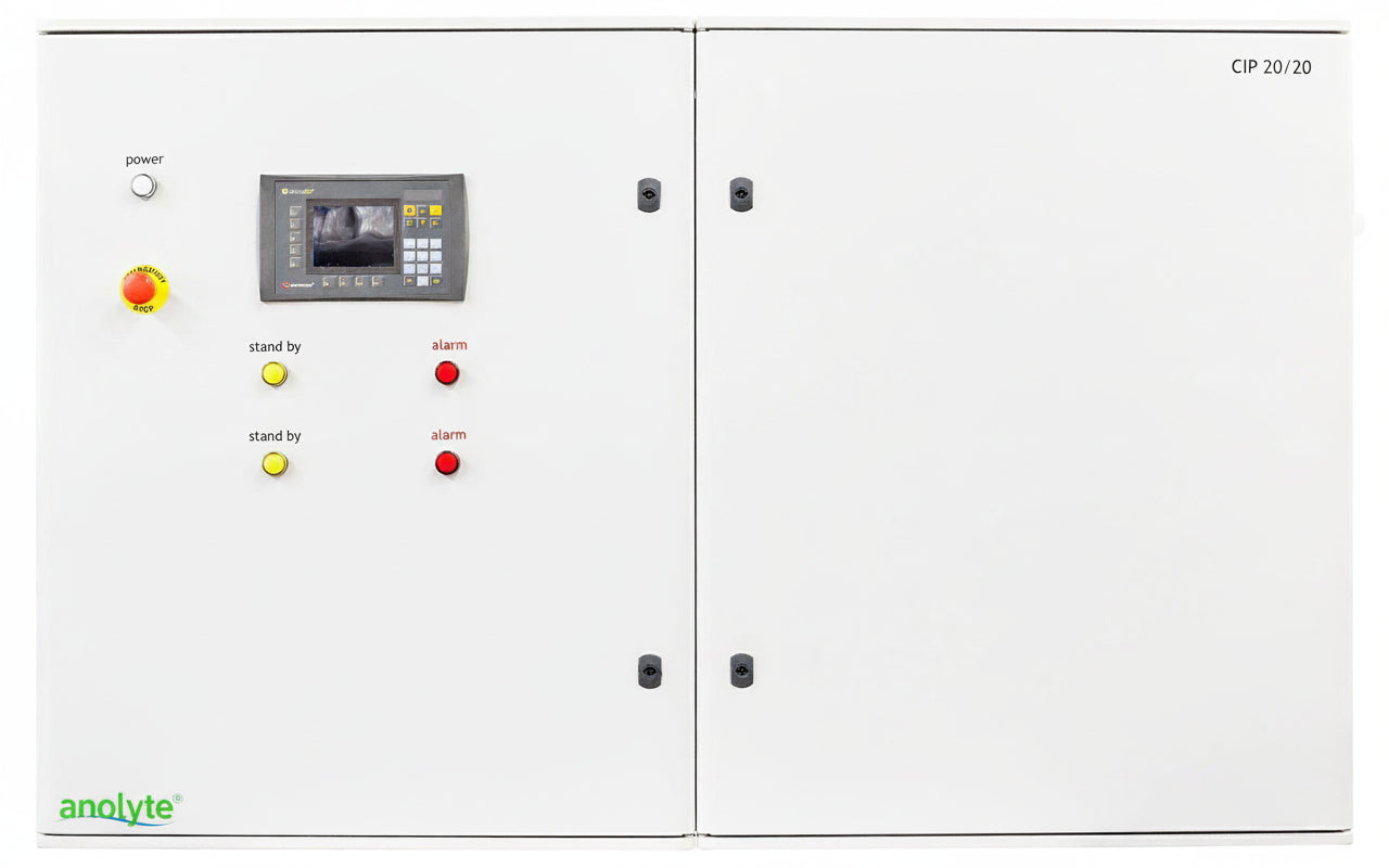 The CIP Series Anolyte Generator by OmniLyte delivers precise and reliable production of anolyte solution, essential for effective sanitation and disinfection processes. Engineered for consistent performance, this generator supports enhanced microbial control while optimizing operational efficiency. Ideal for professional environments requiring stringent hygiene standards, the CIP Series ensures safe, on-demand anolyte generation with minimal maintenance.
