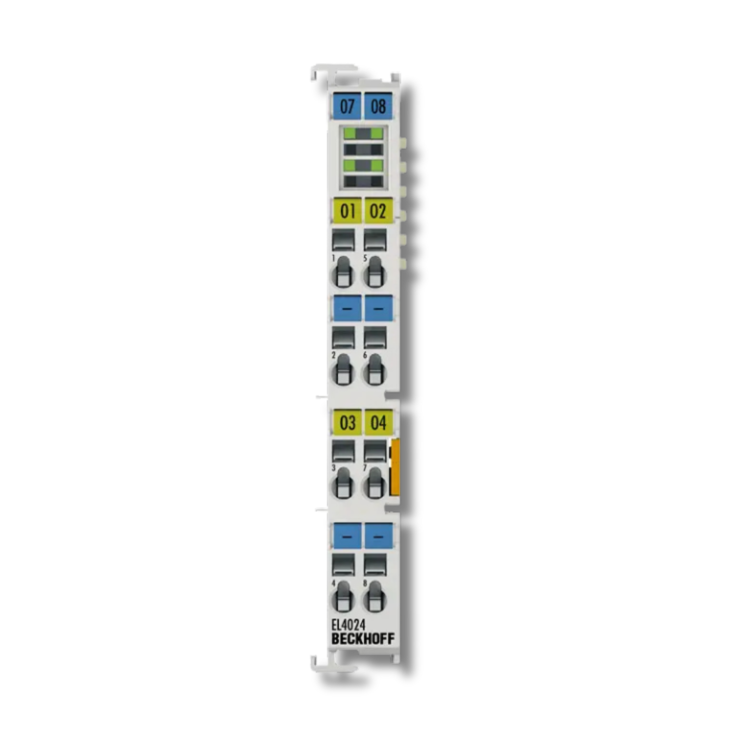 The Beckhoff 050602 EL4024 Terminal is a high-precision 4-channel analog output terminal designed for 4–20 mA current loop applications. Featuring 12-bit resolution and supporting a 4 x 2-wire system, it ensures accurate and reliable signal transmission for industrial control processes. Ideal for integrating with EL4024 modules, this terminal delivers robust performance and precise control output in complex automation environments.
