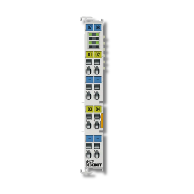 The Beckhoff 050604 EL4028 Terminal is an 8-channel analog output terminal from the EL4028 series, designed for 4–20 mA current output with 12-bit resolution. Integrated into a 1-wire system, it offers streamlined wiring and precise signal control, making it ideal for advanced industrial automation and process control systems requiring accurate multi-channel analog output.